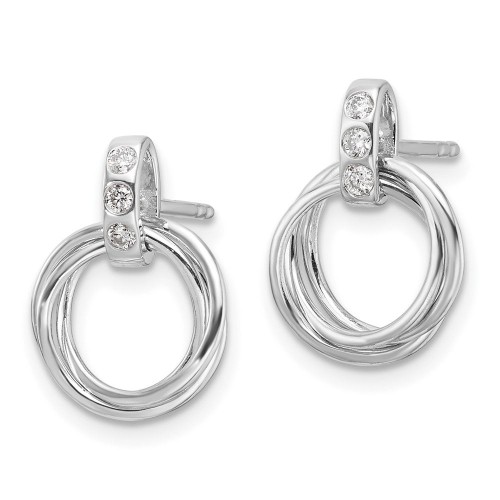 White Ice Sterling Silver Rhodium-plated Fancy Diamond Circle Shepherd Hook Dangle Earrings