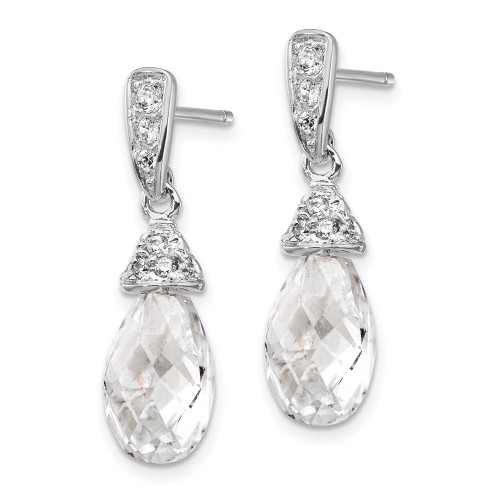 Cheryl M Sterling Silver Rhodium-plated Faceted Briolette and Brilliant-cut CZ Post Dangle Earrings