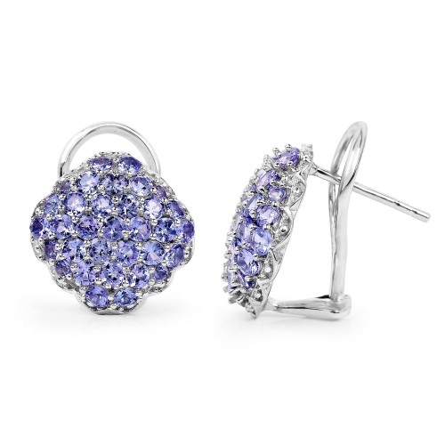 3.61 Carat Genuine Amethyst, Black Diamond and White Diamond .925 Sterling Silver Earrings One size