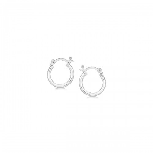 Sterling Silver Rhodium Plated Thin and Small Polished Hoop Earrings (2x10mm) Sterling Silver