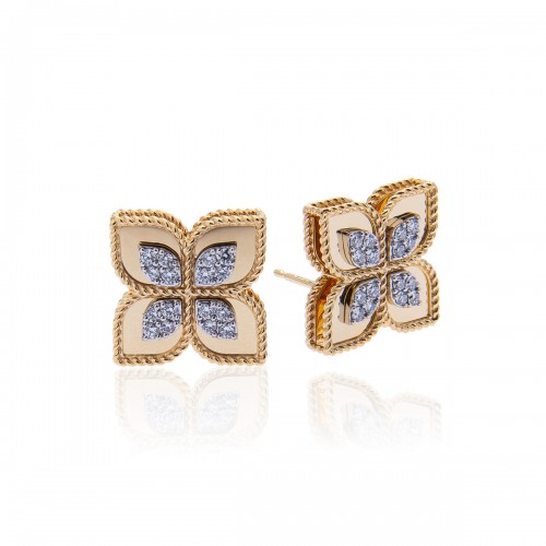Roberto Coin Princess Flower 18K Yellow Gold Principessa Flower Cutout Earrings with Diamond Accents