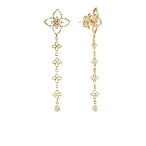 Roberto Coin Princess Yellow Gold Diamond Flower Dangle Earrings