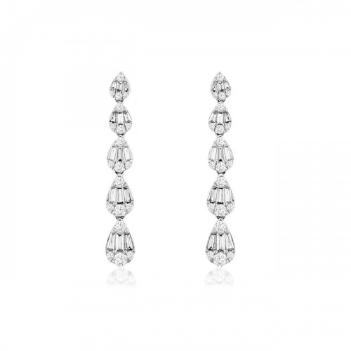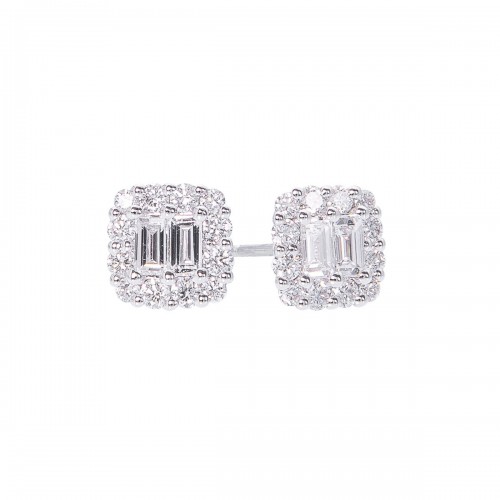 Sabel Collection 14K Rose Gold Fancy Cushion Diamond with Round White Diamond Accent Hoop Earrings