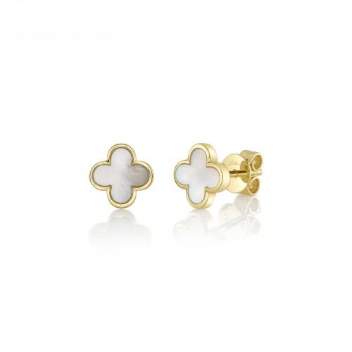 Shy Creation Mother of Pearl Clover Stud Earrings 0.59 CT