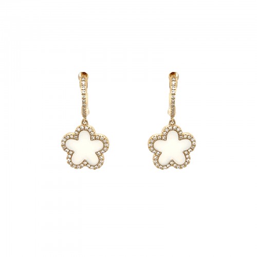 Shy Creation Mother-of-pearl Diamond Flower Earrings