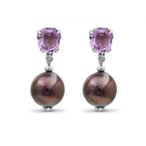 Colorbloom 14mm, 22mm White Mother of Pearl and White Diamond 0.18ct Earring in 18K Gold SDLE-2431
