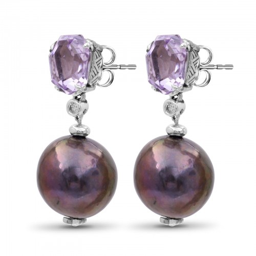 Colorbloom 14mm, 22mm White Mother of Pearl and White Diamond 0.18ct Earring in 18K Gold SDLE-2431