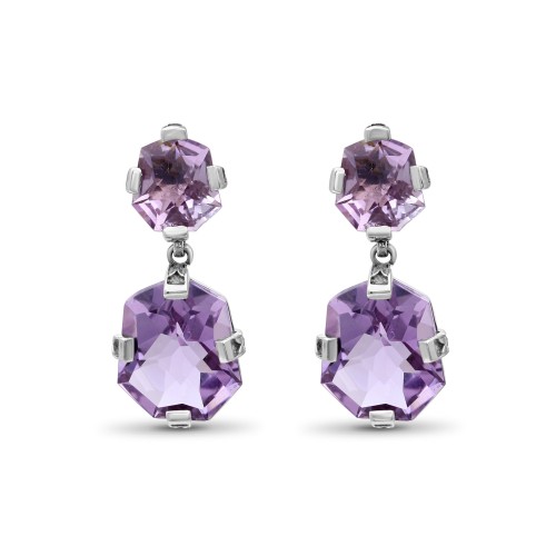 Galactical Amethyst Baroque Pearl and Champagne Diamond Drop Earrings in Sterling Silver SDE-52106