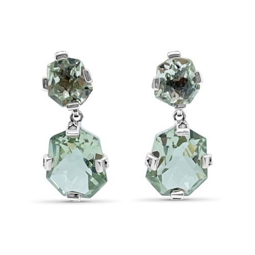 Galactical Green Prasiolite and Champagne Diamond Galactical Earrings in Sterling Silver SDE-52101