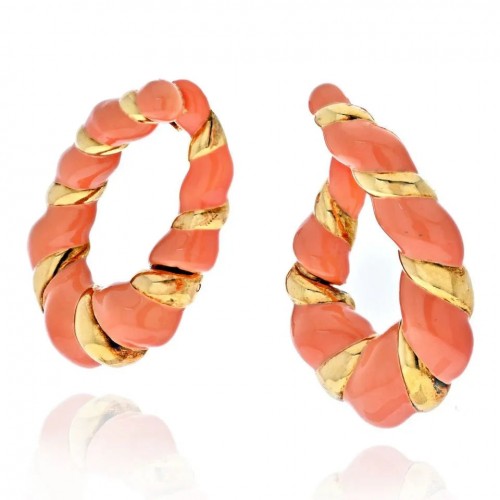 Circa 1960’s 18K Yellow Gold Diamond Emerald & Ruby Earrings