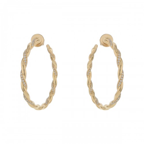 0.28Ct White Sapphire Huggie Earrings in Sterling Silver and 18K Yellow Gold