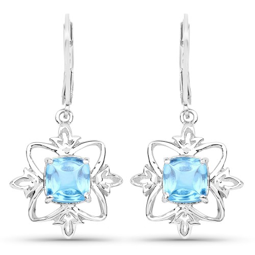 12.14 Carat Genuine Swiss Blue Topaz .925 Sterling Silver Earrings One size