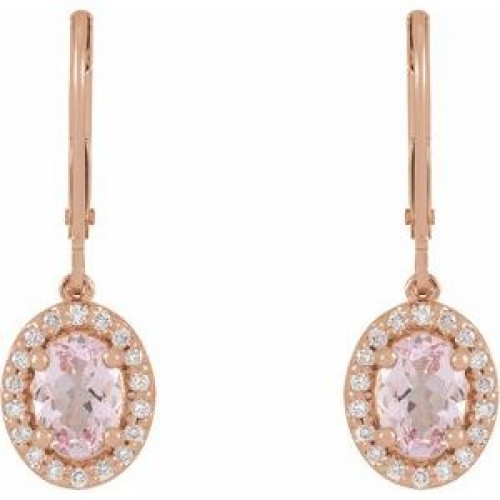 14K Rose Natural Pink Morganite & 1/8 CTW Natural Diamond Earrings First