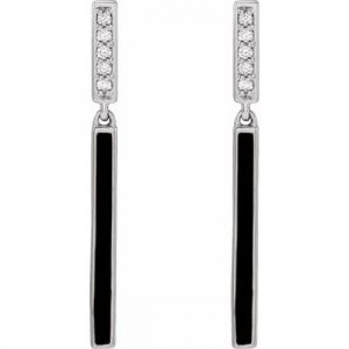 14K White .06 CTW Natural Diamond & Black Enamel Bar Earrings First