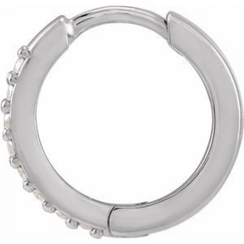 14K White .07 CT Natural Diamond Single 12.5 mm Huggie Earring First
