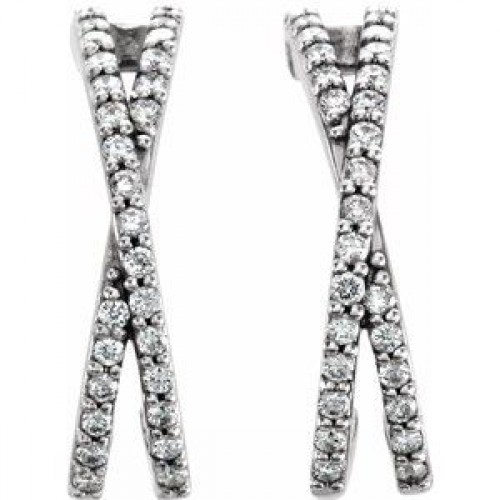 14K White 1/5 CTW Natural Diamond Criss-Cross J-Hoop Earrings First