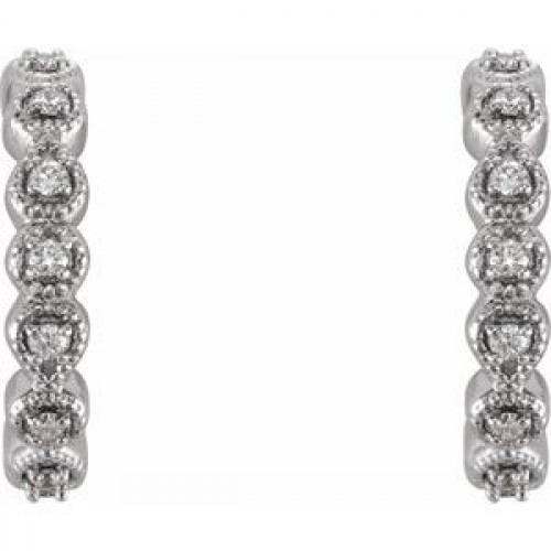 14K White 15.1 mm 1/6 CTW Natural Diamond Huggie Hoop Earrings First