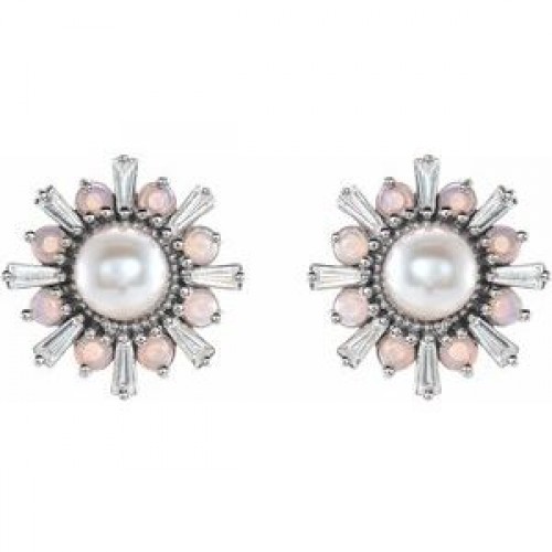 14K White Cultured White Akoya Pearl, Natural White Opal & 1/6 CTW Natural Diamond Earrings First