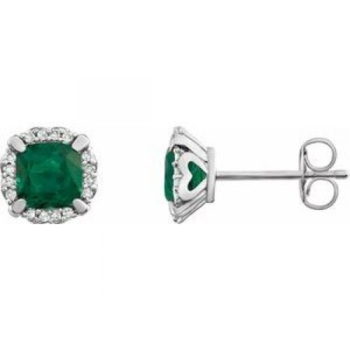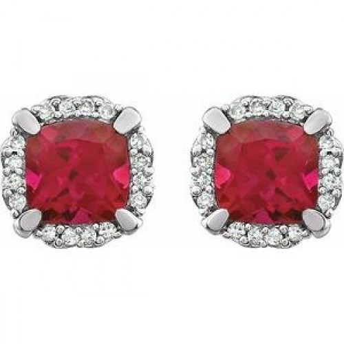 14K White Lab-Grown Ruby & 1/10 CTW Natural Diamond Earrings First