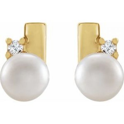 14K Yellow Cultured Akoya Pearl & .03 CTW Natural Diamond Geometric Earrings First