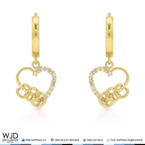- Style: CZ Heart Dangle Huggie Hoop Earrings