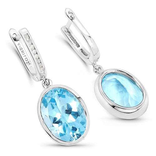 15.13 Carat Genuine Blue Topaz and White Diamond .925 Sterling Silver Earrings One size