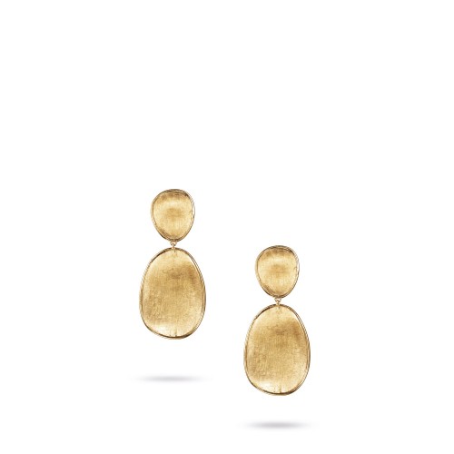 18K yellow gold drop earrings with brilliant cut diamonds. Inspired by the delicate shape of the Lunaria flower, these Lunaria Diamond Earrings are hand hammered and hand engraved by Italian artisans. Earring length: 1.22″. Total diamond weight: 0.05 ct