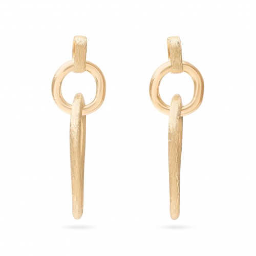 Embellished by a delicate gold hook, this irregularly shaped pendant earring is perfect for any occasion. The 18K yellow gold leaves are finely hand-engraved using the ancient Florentine technique which gives our gold a fine, brushed texture.
