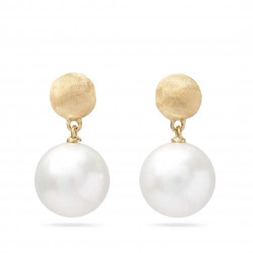 An elegant classic, these 18K yellow gold earrings feature a gold diamond hoop linked together with an oval element, finely hand-engraved using the ancient Florentine technique. A real must-have!