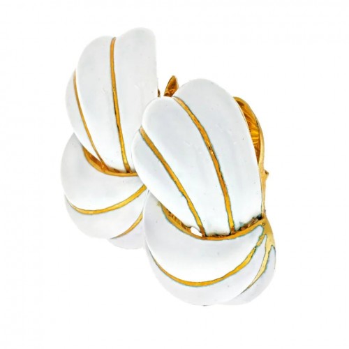 18K Yellow Gold White Enamel Swirl Earrings