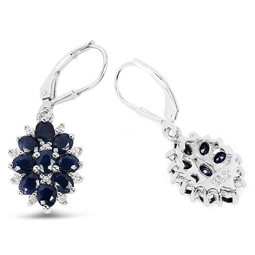 3.94 Carat Blue Sapphire and White Zircon .925 Sterling Silver Earrings