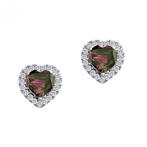5MM Heart Shape Citrine and White Sapphire Birthstone Halo Stud Earrings in 10KT White Gold