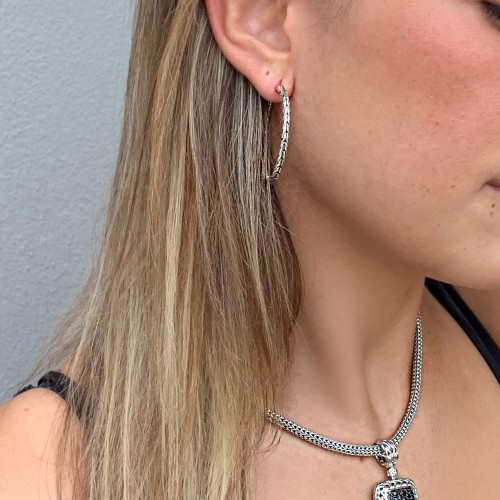 John Hardy Essentials Silver Medium Hoop Earrings with Full Closure