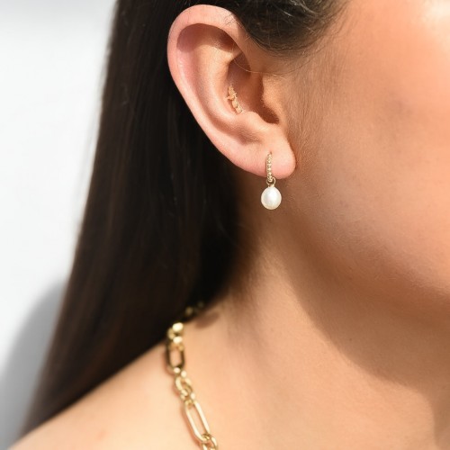 9ct Beaded Hoop with Drop Baroque Pearl