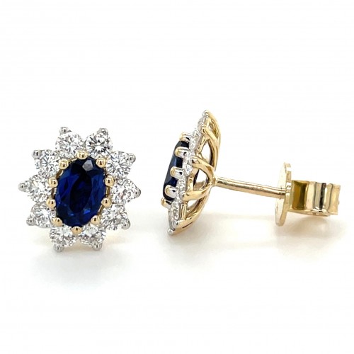 9ct Yellow Gold 1.20ct Laboratory Grown Sapphire & 0.95ct Diamond Cluster Earrings