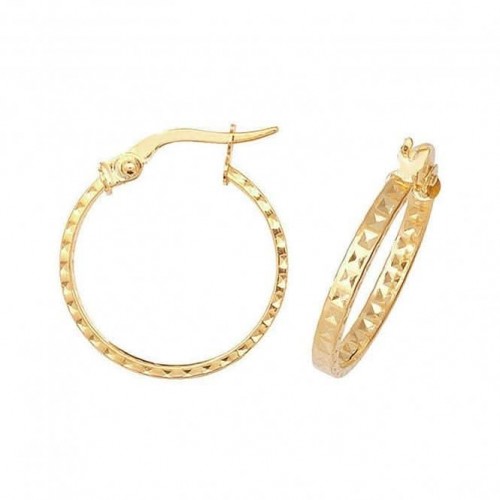 9ct Yellow Gold 10mm Double Cut Hoop Earrings ER651