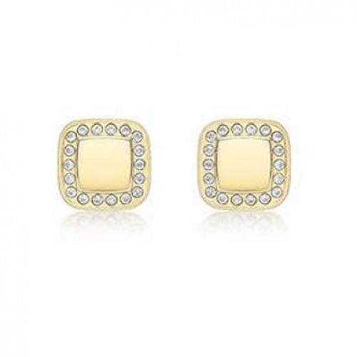 9ct Yellow gold cubic zirconia rim set square stud earrings.