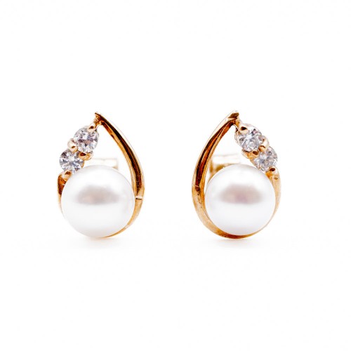 9ct Yellow gold, cultured pearl and diamond earrings.