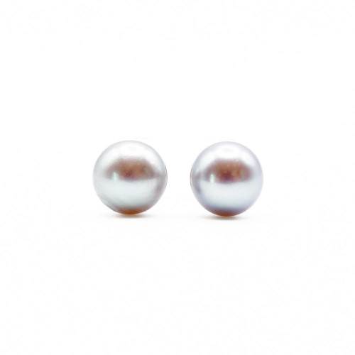 9ct Yellow gold grey freshwater pearl 6mm button stud earrings.