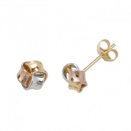 9ct Yellow Gold Tricolour Knot Studs Earrings ES362