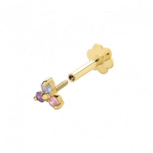 9ct Yellow Gold Tricolour Zirconia Flower Cartilage Labret ES2050