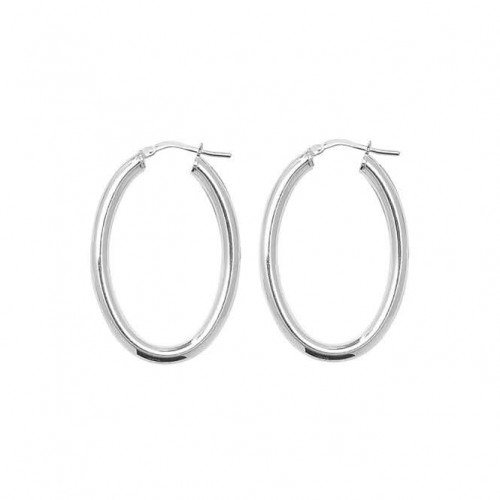 Acotis Silver Hoop Earrings Oval Plain G5258N