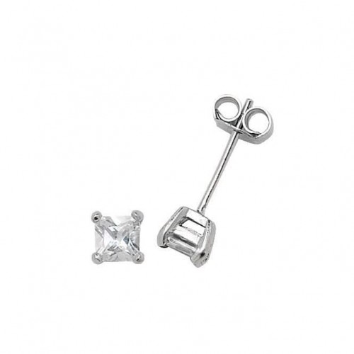 Acotis Silver Stud Earrings Square Zirconia G5987