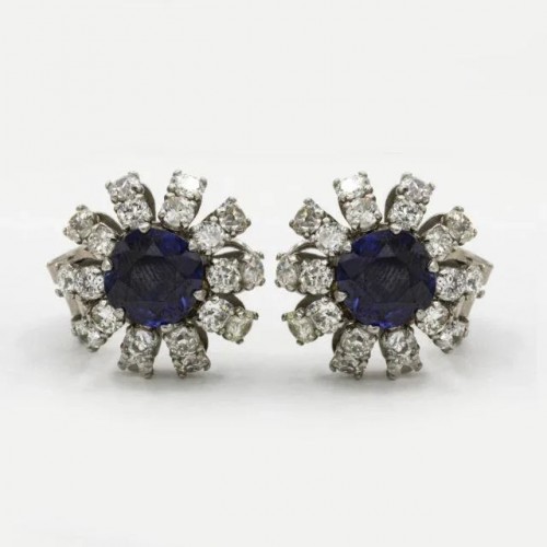 Art Deco Platinum Sapphire & Diamond Earrings