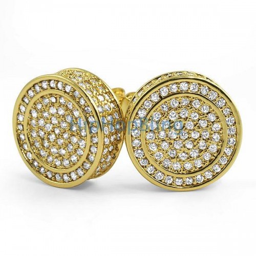 Black Large 3D Circle CZ Micro Pave Iced Earrings