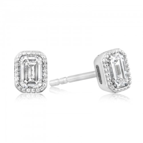 Diamonfire Clear Cubic Zirconia White Shell Pearl Contemporary Princess Cut Earrings E6722