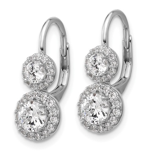 Cheryl M Sterling Silver Rhodium-plated Polished Double Round CZ Halo Leverback Earrings