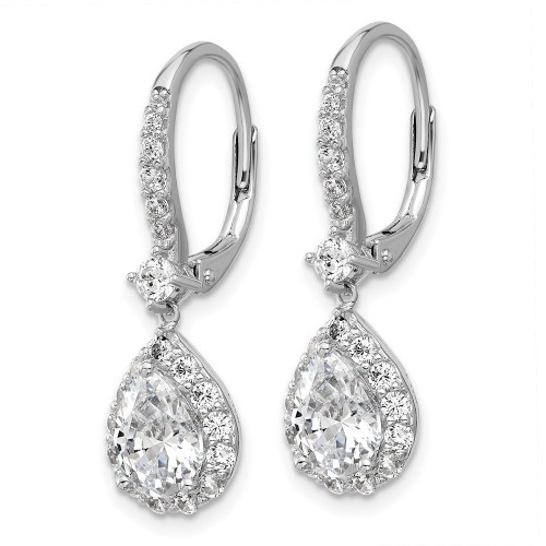 Cheryl M Sterling Silver Rhodium-plated Polished Pear CZ Halo Leverback Dangle Earrings