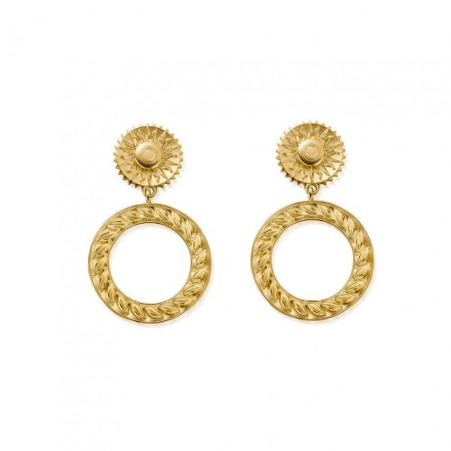 The Sun Statement Earrings are a symbol of growth and spiritual energy. Wear the sun charm as a representation of balance and harmony within your character. The Sun Statement Earrings feature a detailed sun charm with a stem and butterfly back and detailed drop hoop. Complete your look with the Sun Ring.