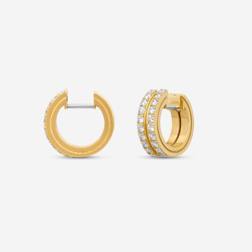 Radiating joyful elegance, these drop earrings from Chopard’s Happy 8 collection combine modern grace with timeless charm. Crafted in luminous 18K white gold, each earring features a dazzling interplay of round forms and floating diamonds, totaling 0.51 carats, that move freely within the transparent casing—creating a playful dance with every turn of the head. The lever-back closure ensures a secure and comfortable fit, while the iconic Chopard design reflects Swiss mastery and a spirit of lighthearted luxury.